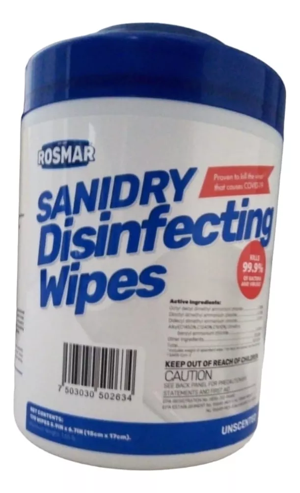 Toallitas humedas sanitizantes de alta calidad para hogares y empresas. Se ha demostrado que tiene una eficacia del 99,9% en la eliminación de bacterias, virus y hongos causantes de enfermedades